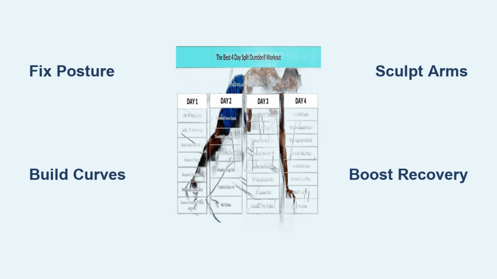 Tired of endless cardio sessions with minimal results? You’re not alone. Most women struggle to build lean muscle and shed stubborn fat with traditional workout routines. The solution? A targeted 4-day dumbbell workout designed specifically for female physiology that delivers visible changes in just 4 weeks. This science-backed program uses strategic upper/lower splits to maximize muscle growth while minimizing joint stress—all with equipment that fits in your closet. No gym membership required, no complicated machines, just proven results in 20-30 minutes per session.