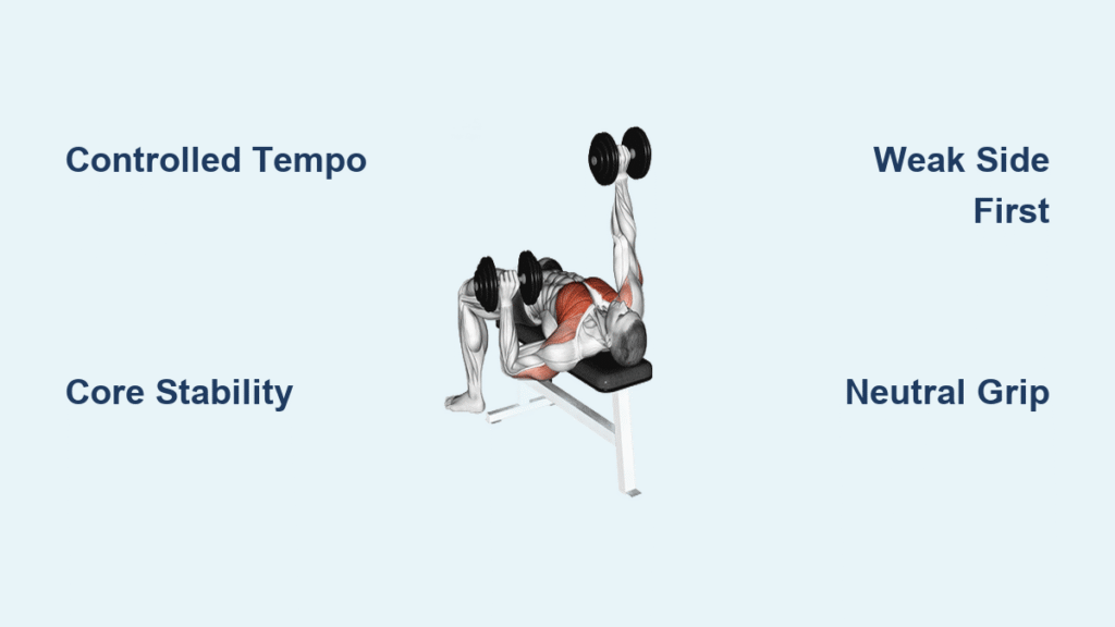 Critical note: Count reps per arm (e.g., 10 right + 10 left = 20 total reps). Never match your bilateral press weight—this variation feels 20% heavier due to stabilization demands.