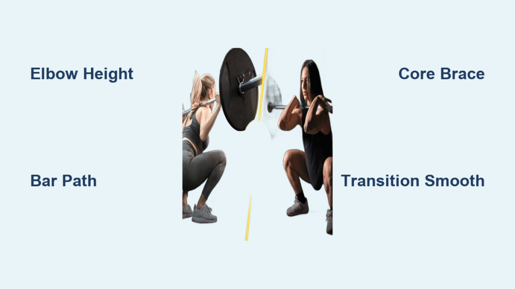 Initiate the shift by driving elbows slightly higher to create clearance. As you extend your wrists, rotate elbows backward while simultaneously tilting your head forward. The bar should travel along your hairline in a controlled arc—not straight up—before settling on your rear deltoids. Time this movement with your breathing: inhale during front squat ascent, hold during transition, exhale upon back squat descent.