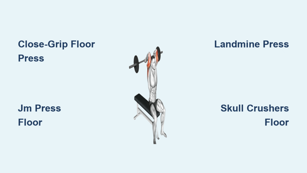 The floor press restricts your range of motion to the top 30%—exactly where triceps dominate. Without a bench, you avoid the dangerous shoulder extension at the bottom of traditional presses. Lifters with elbow pain often report immediate relief switching to this variation while maintaining heavy loads.