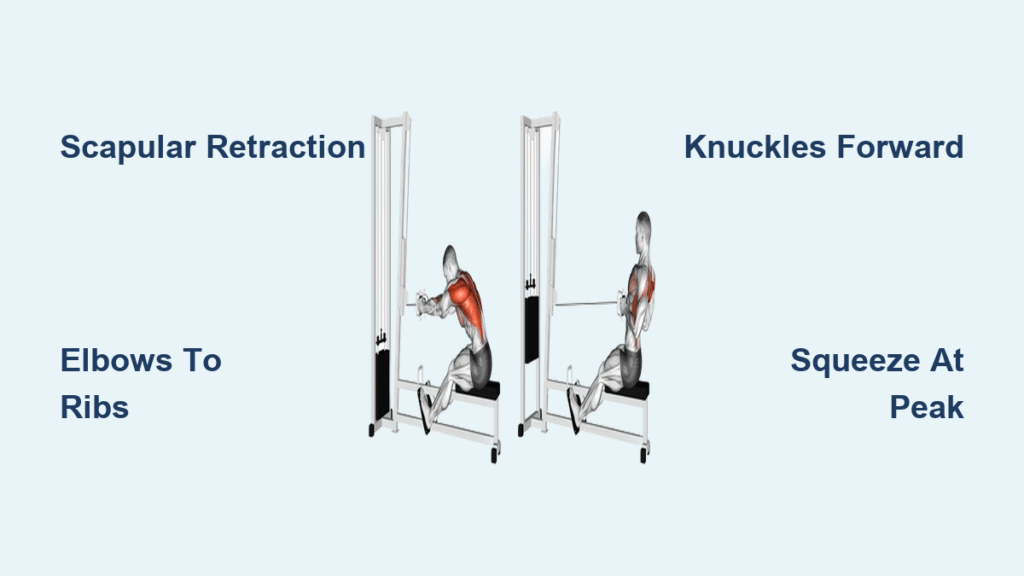 Rhomboids and traps engage maximally during the 2-second peak squeeze. Skip this hold, and you lose 37% of mid-back thickness stimulus. Feel nothing? Place a tennis ball between your shoulder blades pre-pull—it forces scapular retraction.