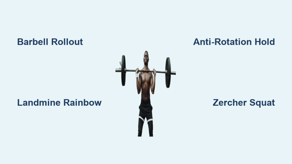 Don’t have a commercial landmine? Roll a thick towel, wedge it into a corner, and trap one end of the barbell for an instant anchor point. This setup enables critical anti-rotation exercises like the Landmine Rainbow that build the oblique strength needed for heavy squats and deadlifts. Always test your DIY landmine’s stability before loading plates—watch for any shifting or slipping during initial movement.