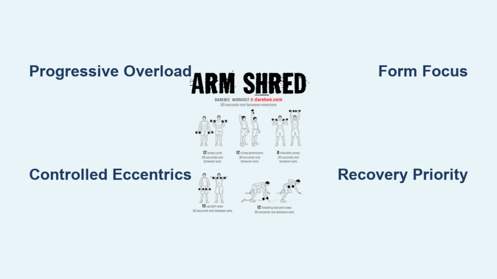 Always start with 5 minutes of dynamic warm-ups: arm circles, band pull-aparts, and two light sets of hammer curls. If you feel sharp elbow or shoulder pain, stop immediately—it’s not “good pain.” Reduce weight 20% and reassess form. Never train arms more than 3x weekly; 48 hours of recovery prevents overuse injuries. Every 6 weeks, take a deload week with 40% weights to let connective tissues heal. This isn’t optional—it’s how elite lifters avoid career-ending strains.