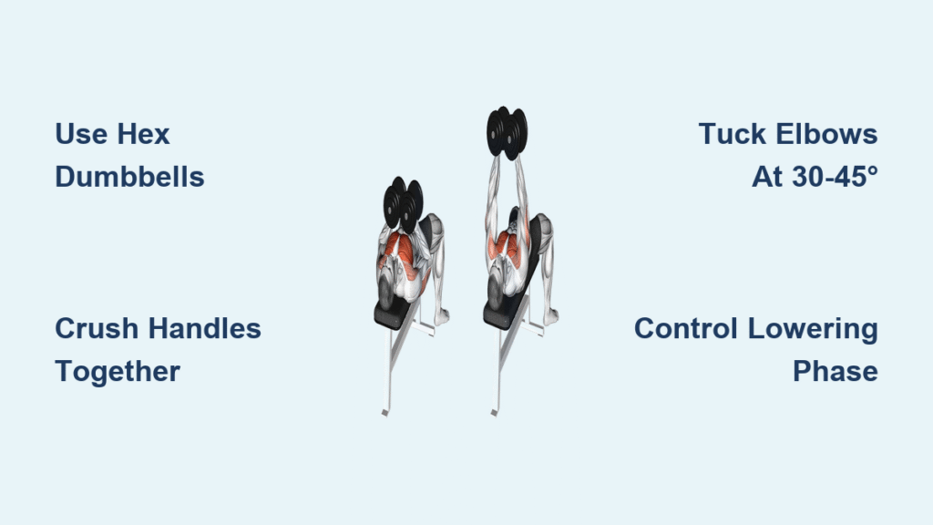 Pro tip: If your gym lacks hex dumbbells, wrap resistance bands tightly around the handles. The band tension actually enhances the squeeze effect.