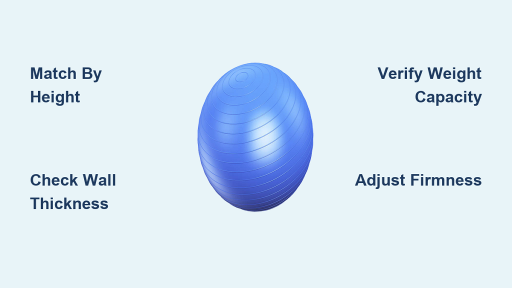 Before committing to a stability ball, verify these critical factors: First, confirm the exact diameter matches your height using the knee-hip alignment test. Second, check wall thickness—anything under 3mm won’t withstand regular use. Third, ensure the weight rating exceeds your body weight by at least 50 pounds for exercise use or 100 pounds for office sitting. Finally, test the surface texture against your forearm to verify comfort during extended contact.