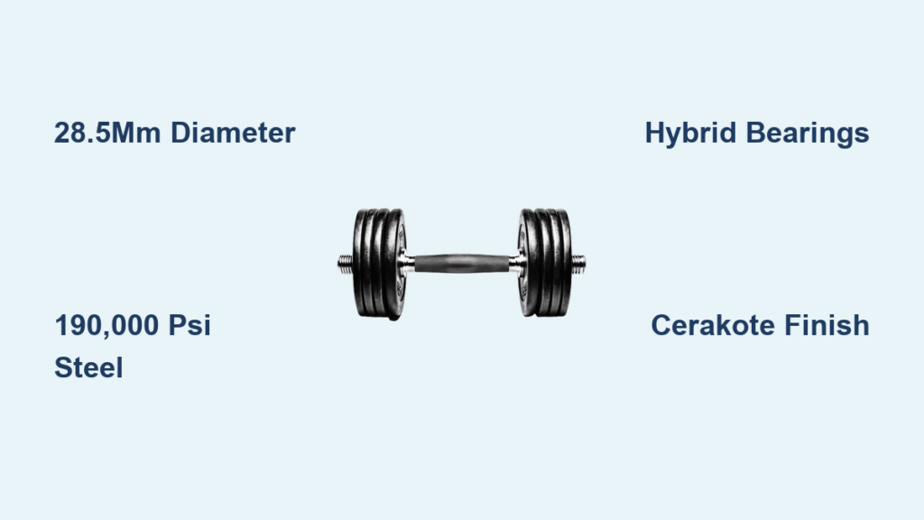 Bare steel offers the best grip feel but rusts within weeks in humid environments—avoid unless you’ll oil it weekly. Black oxide provides moderate protection but typically shows oxidation spots within 2 years. Cerakote’s polymer-ceramic finish resists corrosion for 10+ years even in damp garages, making it the #1 choice for home gyms. Stainless steel lasts decades but costs 40% more—justified only for salt-air coastal areas. Pro tip: Run a magnet over the bar. If it sticks, the coating isn’t stainless steel (true stainless is non-magnetic).