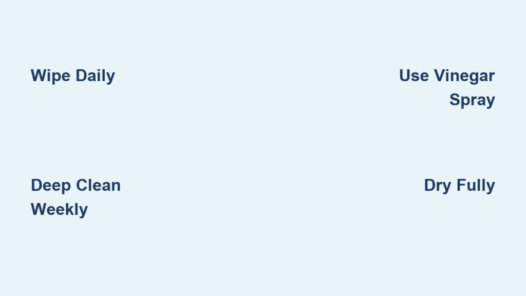 Assemble these essential items before starting to ensure efficient, damage-free cleaning. For daily maintenance, keep a spray bottle with 1 cup water mixed with 1 teaspoon mild dish soap (like Dawn Original), a microfiber cloth specifically for mat care, and a clean cotton towel for drying. Avoid paper towels—they leave fibers that embed in the mat’s surface.