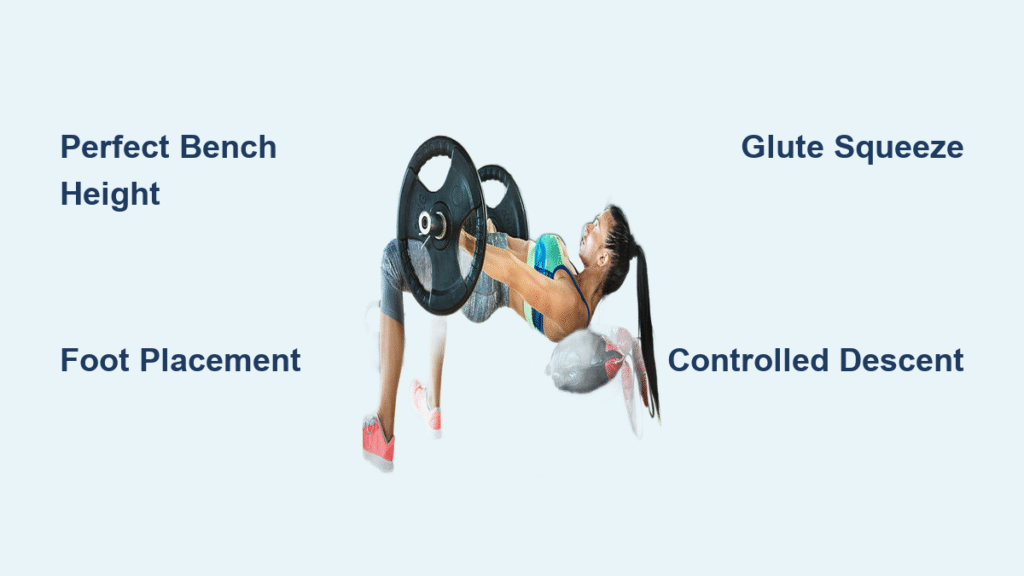 At full extension, your body must form a straight line from knees through shoulders with a 90-degree knee angle. Engage your core to keep ribs pulled down—no rib flaring allowed. Pause for 2-3 seconds while squeezing your glutes as hard as possible. This isn’t about lifting the bar higher; it’s about maximum muscle contraction. If you feel lower back strain instead of glute burn, drop the weight and revisit your setup.