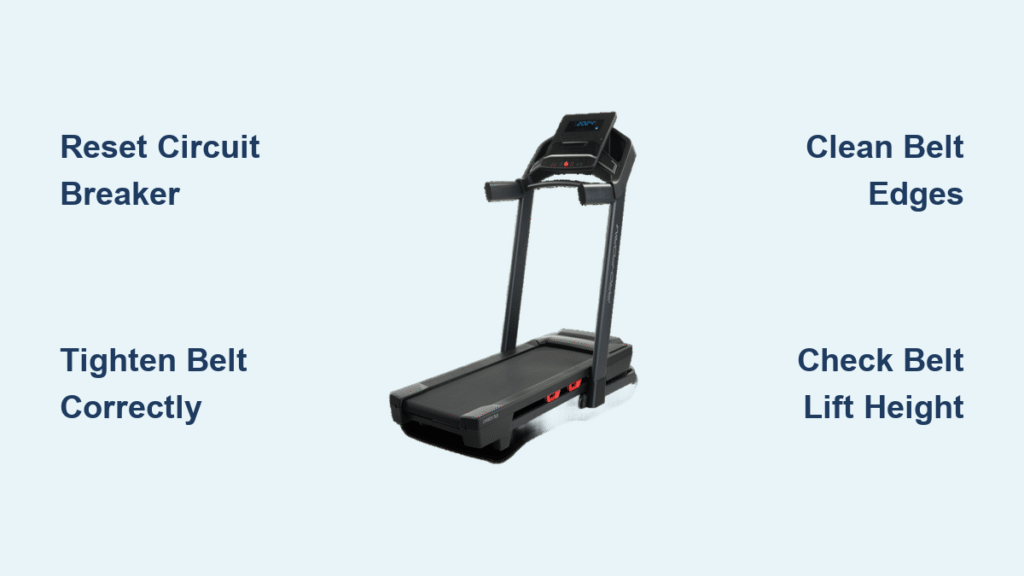 Visual cue: Watch belt movement—if it wobbles side-to-side, flooring is uneven. Never place towels under legs; use threaded stabilizers only.
