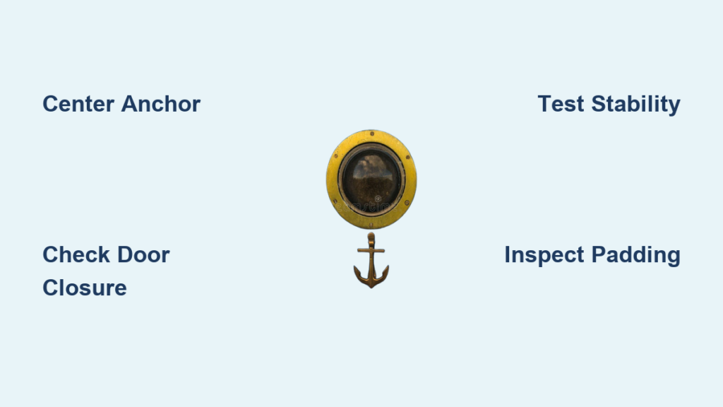 Center the anchor horizontally across the entire width of the door top—this distributes force evenly and prevents tilting. For strap-style anchors, ensure both sides hang down equally on the non-exercising side. Close the door slowly while watching the anchor’s position, making sure it doesn’t shift or slide during closure. The ideal position has the anchor sitting flush against the door’s top surface with no gaps between the anchor padding and the door material.