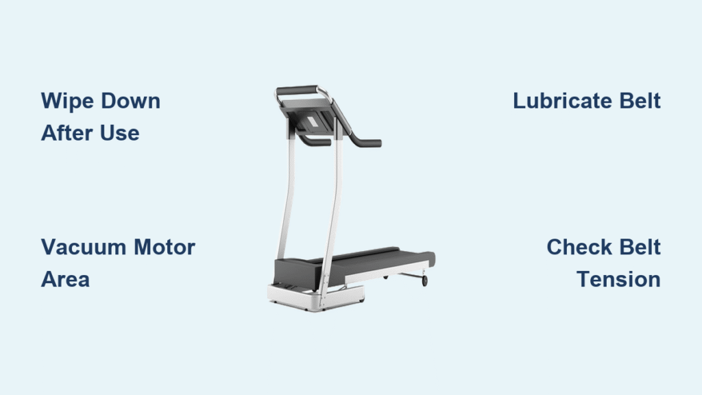 Pro tip: Keep manufacturer-approved sanitizing wipes in a drawer next to your treadmill. That 30-second wipe-down prevents corrosion and maintains touch-screen responsiveness—no special skills required.