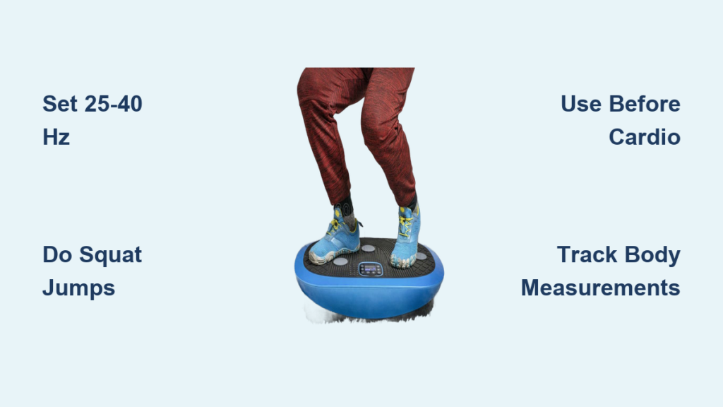 For weight loss purposes, aim for the 25-40 Hz range where research shows optimal muscle activation occurs. Start at 25 Hz for 3 minutes as your body adapts, then gradually increase to 35 Hz as your tolerance builds. This intensity creates enough muscle challenge to elevate your heart rate into the fat-burning zone (approximately 60-70% of your maximum heart rate) without risking joint strain. Many users report feeling a noticeable “burn” in their legs and core within 5-7 minutes at this intensity level.