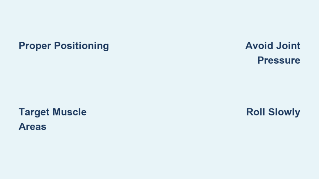 Applying pressure directly on joints or bones causes unnecessary pain and potential injury. Always position the roller on muscle tissue, not on bony prominences. If you feel bone contact, adjust your position slightly. Your knees, elbows, and spine require special care—never roll directly on these structures.
