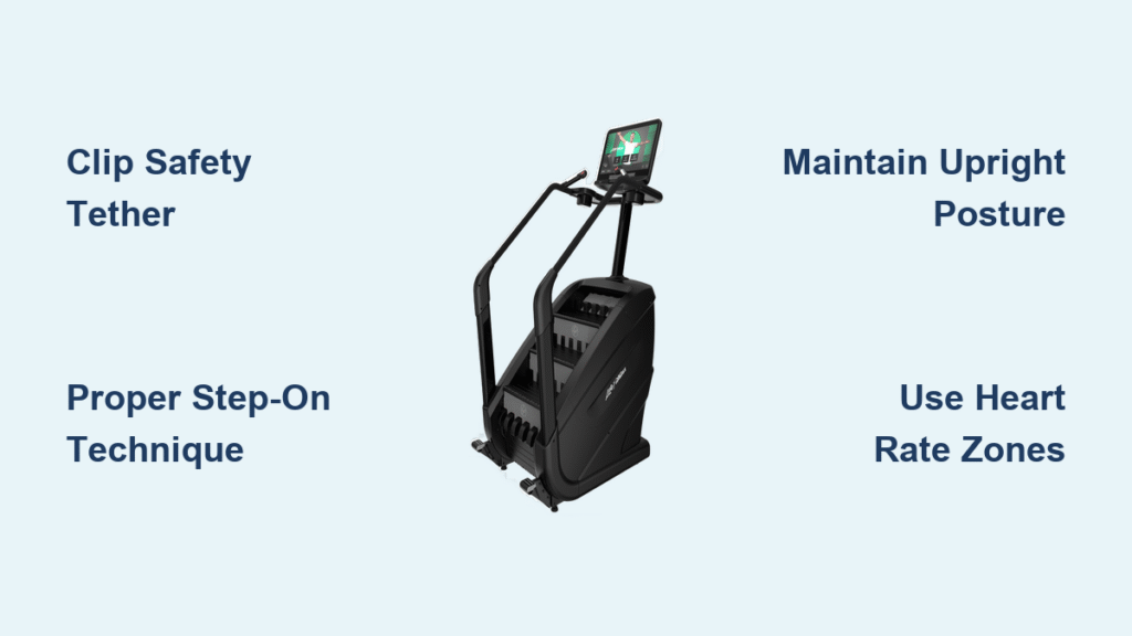 That red magnetic clip isn’t optional decor. Clip it securely to your waistband before mounting. This emergency tether instantly kills motor power if you stumble or need abrupt stops. Life Fitness engineers designed this as your last line of defense against runaway steps. If your machine lacks this clip, request a technician visit—safety systems aren’t worth compromising. Never bypass this feature, even for “just a quick warm-up.”