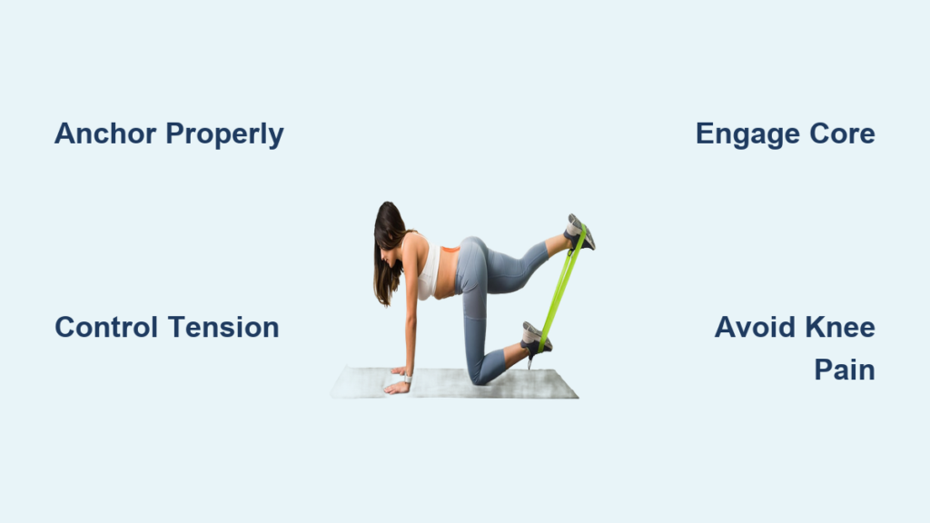 Never anchor bands above knees for leg work. This creates unnatural torque on the joint. For clamshells or side lifts, place bands below knees—this engages glute medius correctly without straining ligaments. Test proper placement: Lie on side, knees bent 90 degrees. Lift top knee while keeping ankles touching. If you feel burn on outer hip (not knee), the band is positioned right. If pain shoots into knee, lower band toward calves. Always keep micro-bend in standing leg during exercises—locking joints risks band snap recoil.