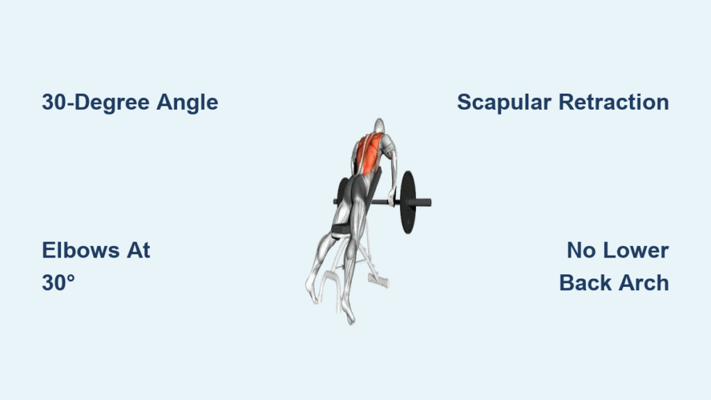 Pro cue: “Pull the ceiling toward you, not the bar toward your chest.” This shifts focus from biceps to lats. If your elbows flare past 45 degrees, reset—wide elbows turn this into a rear delt exercise.