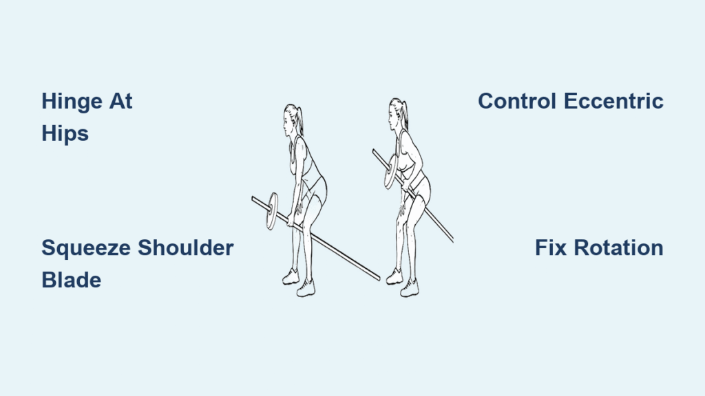 Initiate the row by driving your elbow back and slightly upward, imagining you’re pulling the bar toward your hip pocket rather than your chest. Focus on squeezing your shoulder blade toward your spine while keeping your elbow close to your body. The bar should travel in a slight arc, not a straight line, maximizing lat stretch at the bottom and peak contraction at the top.