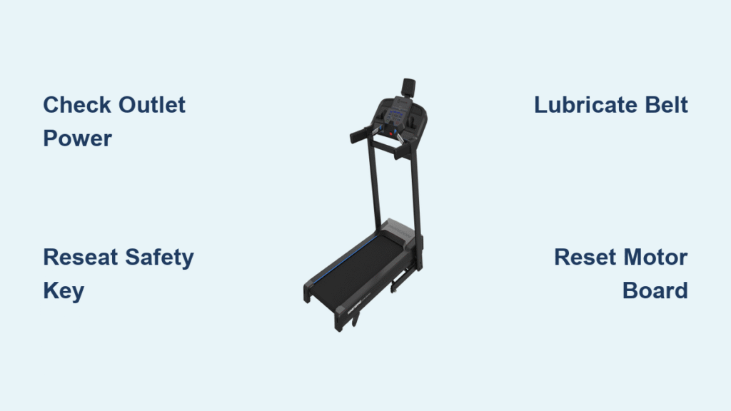 Your Horizon Fitness treadmill won’t power on during your morning workout. The console stays dark, displays strange dashes, or shows