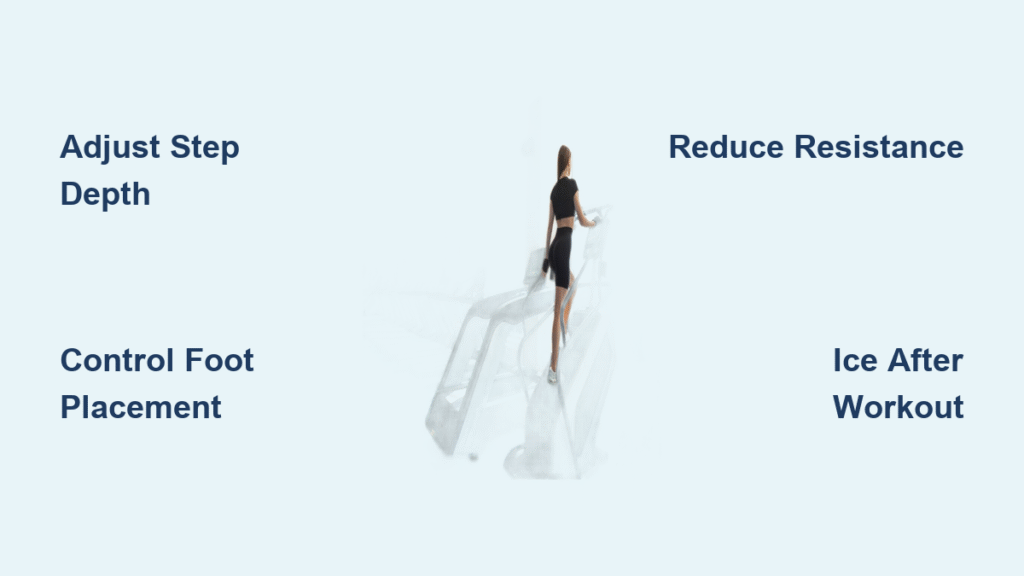 Shallow steps reduce tendon strain by 40% compared to deep lunging motions. Instead of taking exaggerated steps that force your heel far below the pedal level, focus on taking smaller, controlled steps where your heel barely drops below the pedal. This modification keeps your gastrocnemius muscle engaged without overloading the tendon through excessive stretching.